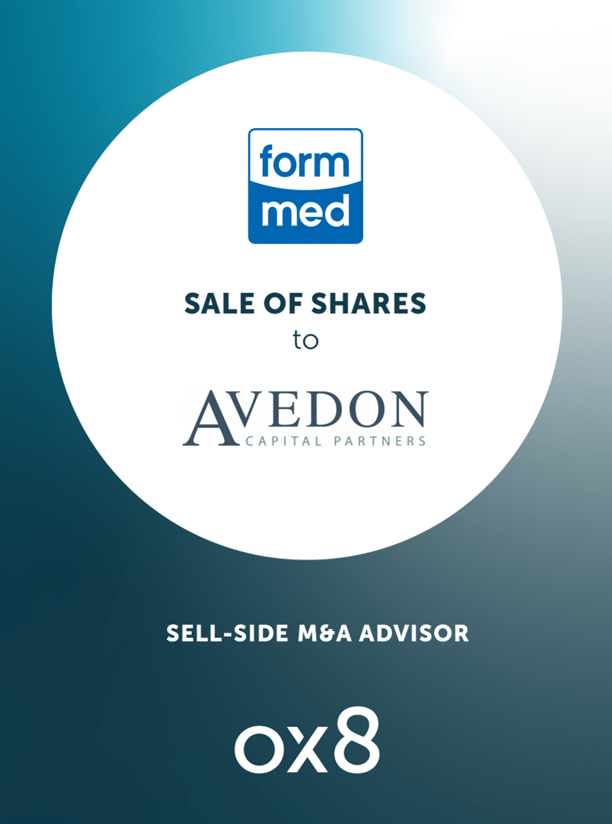 July, 2022. ox8 Corporate Finance exclusively advised the shareholder of FormMed HealthCare AG (“FormMed”) on the investment by Avedon Capital Partners (“Avedon”). FormMed is a leading developer and supplier of micronutrients for therapeutic use. The founder Dr. Martin Lemperle will retain a significant stake in the company and will actively shape its further development.
